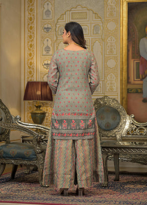 Green Floral Printed Embroidered Straight Kurta & Palazzo with Dupatta